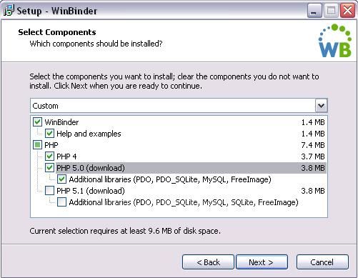 WinBinder açık kaynak kodlu bir PHP eklentisidir. PHP programcılarının kolayca 32 bitlik yerel Windows uygulamaları oluşturmalarını sağlar. PHP'nin esnek yapısı sayesinde çok az kod satırı ile fonksiyonel programlar hazırlanabiliyor.