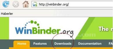 Önce www.winbinder.org sitesine girilir ve ardından “Download” kısmına tıklanır.